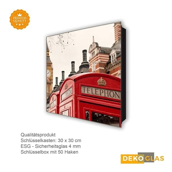 Schlüsselkasten 'Telefonzelle UK' 30×30 Glas, inkl. Haken Schlüsselbrett Schlüssel-Box Design Aufbewahrung