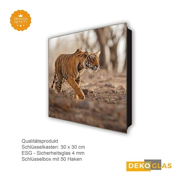Glasbild-Welt Schlüsselkasten ‚Tiger in 30×30 cm‘