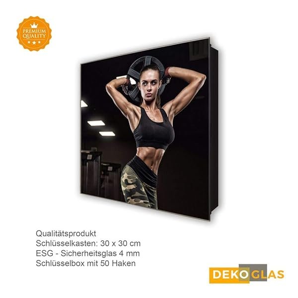 Glasbild-Welt Schlüsselkasten ‚Trainierte Frau in 30×30 cm‘