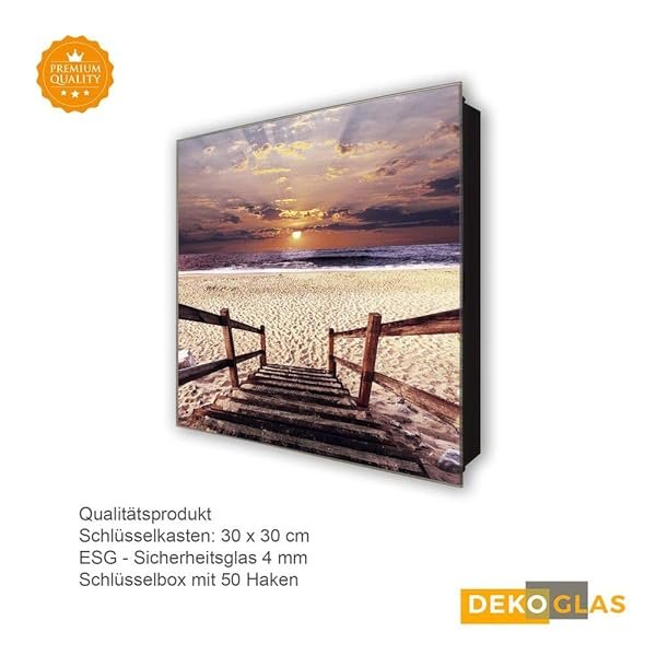 Schlüsselkasten 'Treppe zum Strand ' 30×30 Glas, inkl. Haken Schlüsselbrett Schlüssel-Box Design Aufbewahrung