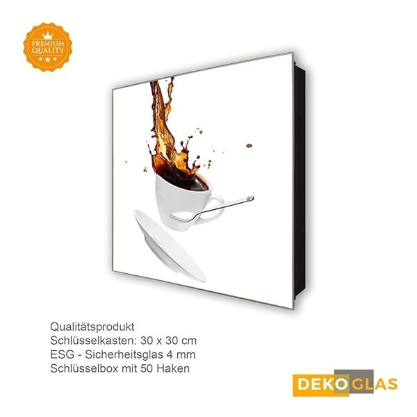 Schlüsselkasten 'Verschütterte Tasse' 30×30 Glas, inkl. Haken Schlüsselbrett Schlüssel-Box Design Aufbewahrung