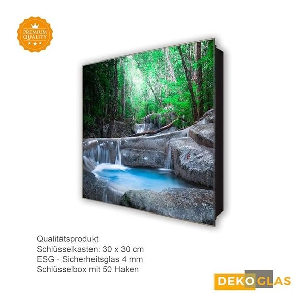Glasbild-Welt Schlüsselkasten ‚Wasserfall in 30×30 cm‘