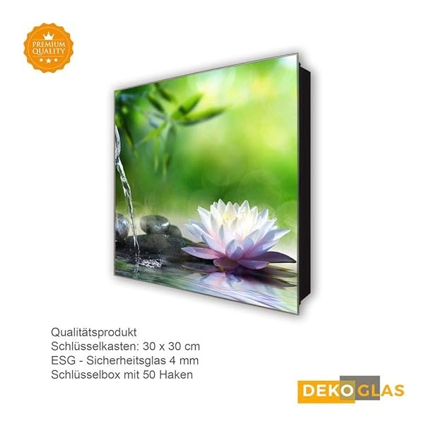 Glasbild-Welt Schlüsselkasten ‚Wasserfall Lotus in 30×30 cm‘