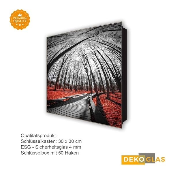 Mit diesem hochwertigen ca. 30 x 30 cm großen Schlüsselkasten dekorieren Sie gekonnt Ihren Eingangsbereich und sind nie wieder auf der Suche nach Ihren Schlüsseln. Der Schlüsselkasten von Glasbilder-Welt wird im Digitaldruck hergestellt, mit höchster Auflösung auf Folie gedruckt und anschließend auf Sicherheitsglas (ESG) geklebt. Durch das hoch entwickelte Produktionsverfahren, sowie die Verwendung neuester Nanotechnologie wird eine besondere 3D-Tiefenwirkung und Farbintensität erzielt.