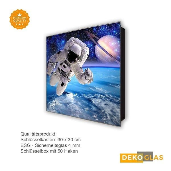 Schlüsselkasten 'Weltraumwunder' 30×30 Glas, inkl. Haken Schlüsselbrett Schlüssel-Box Design Aufbewahrung